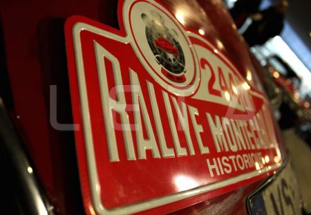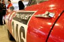 Plāksne pie restaurētās "Jaguar E-type" vēsturiskās automašīnas, kas ...