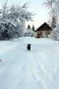 Māja un suns ziemā.