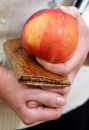 Ābols rokās izstādē "Latvijā audzēti āboli" Latvijas Dabas muzejā.