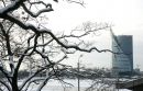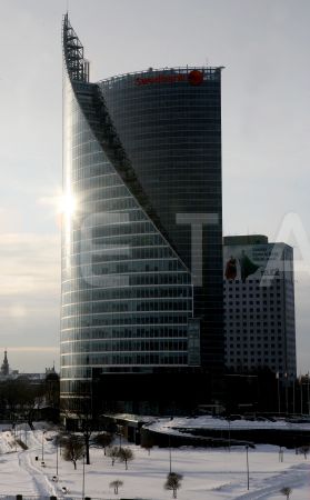 Skats uz "Swedbank" administratīo ēku "Saules akmens" no Vanšu tilta.