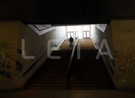 Kāpnes uz Centrālās dzelzceļa stacijas vilcienu peroniem no Dzirnavu ...