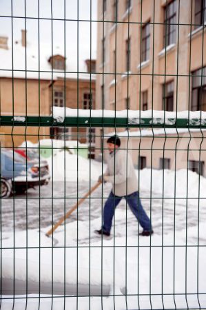 Sniegavīrs pie Jēkaba kazarmām Torņa ielā.