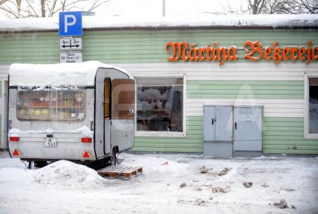 Dārzeņu tirgošanas busiņš un "Mārtiņa beķereja" Ikšķiles ielā.