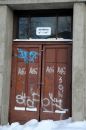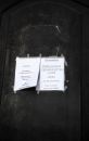 Paziņojumi pie mājas durvīm Dzirnavu ielā.