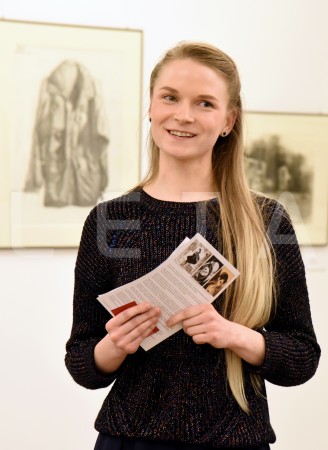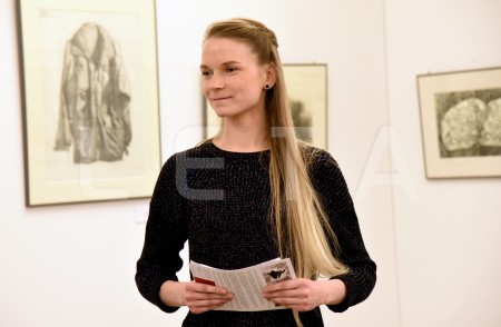 Izstādes kuratore, māksliniece Anda Skadmane uzrunā klātesošos ...