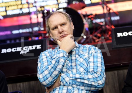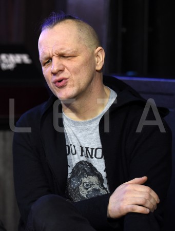 Grupas "Dzelzs Vilks" solists Juris Kaukulis piedalās mediju pasākumā ...
