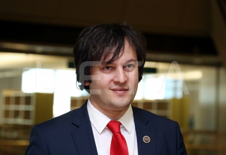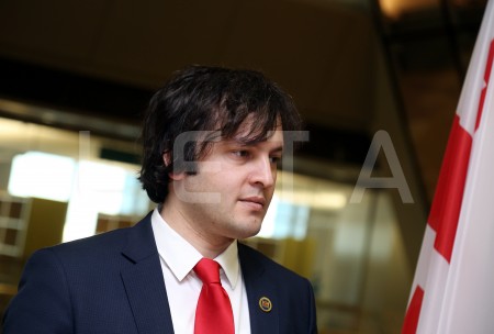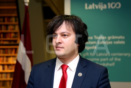 Gruzijas parlamenta priekšsēdētājs Iraklijs Kobahidze (no kreisās) ...