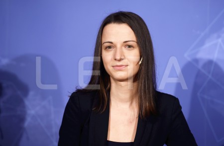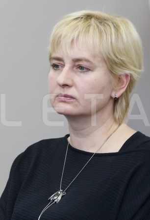 Rīgas domes deputāte Juta Strīķe piedalās preses brīfingā, kurā ...