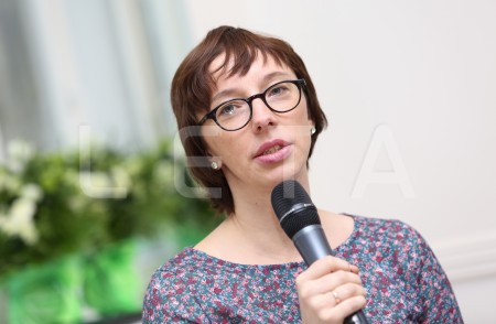 Bērnu slimnīcas fonda vadītāja Liene Dambiņa piedalās preses ...