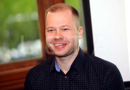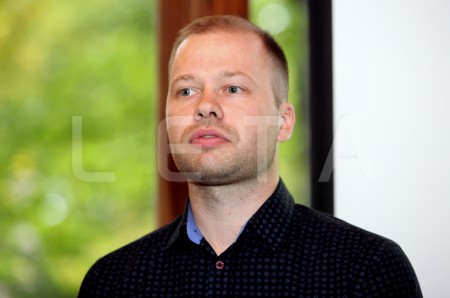 Latvijas Radio žurnālists Eduards Liniņš piedalās preses konferencē ...