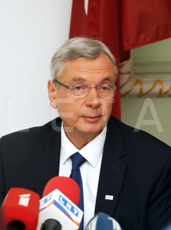 Zemkopības ministrs Jānis Dūklavs piedalās preses konferencē pēc ...