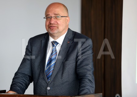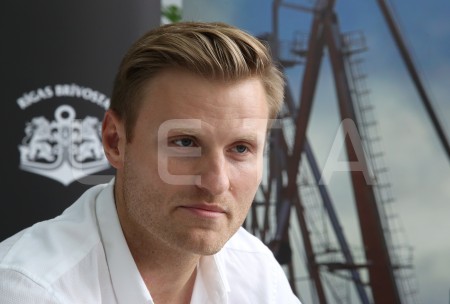 Rīgas Brīvostas pārvaldnieks Ansis Zeltiņš piedalās preses konferencē ...
