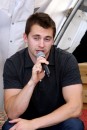 Skrituļslidotājs no ASV Džošs Glovickis piedalās preses konferencē ...
