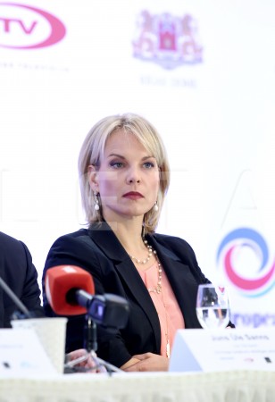 Dziedātāja Zlata Ogņeviča piedalās preses konferencē par festivālu ...