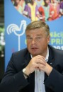 Programmas dalībnieks Mārtiņš Oliņš piedalās preses konferencē, kas ...