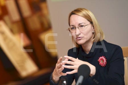 Kultūras ministre Dace Melbārde piedalās preses konferencē, kurā ...