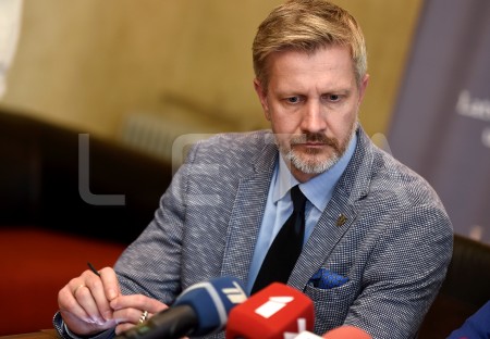 Aizsardzības ministrs Raimonds Bergmanis piedalās preses konferencē ...