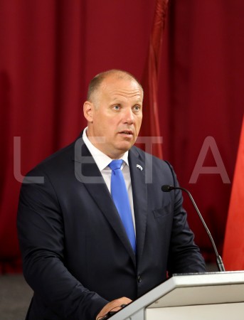 Latvijas aizsardzības ministrs Raimonds Bergmanis piedalās svinīgā ...