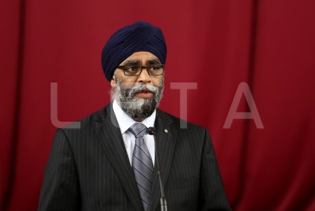 Kanādas aizsardzības ministrs Hardžits Sadžans piedalās preses ...