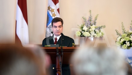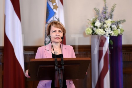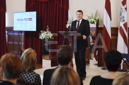 Valsts prezidents Raimonds Vējonis uzrunā klātesošos Latvijas valsts ...