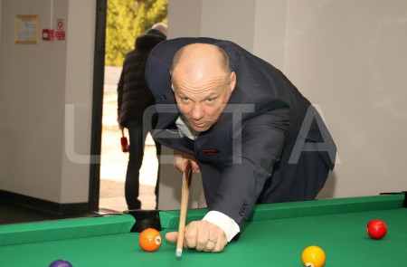 Aizsardzības ministrs Raimonds Bergmanis spēlē biljardu jaunās ...
