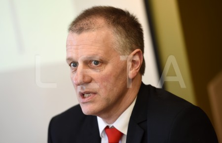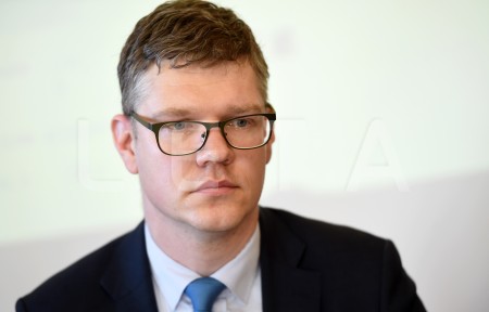 Siguldas novada domes priekšsēdētājs Uģis Mitrevics piedalās preses ...