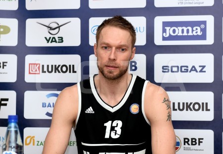 "VEF Rīga" spēlētājs Gints Antrops piedalās preses konferencē pēc ...