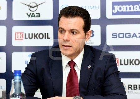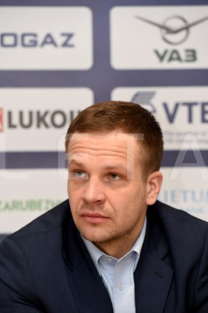 VTB Vienotās līgas prezidents Sergejs Kuščenko preses konferencē, lai ...