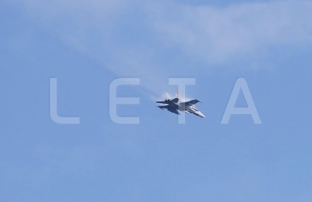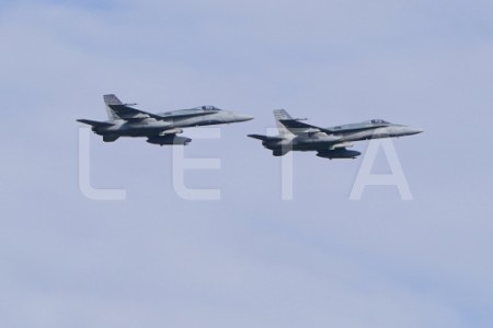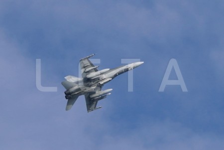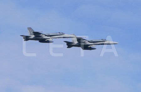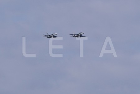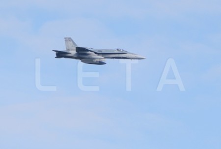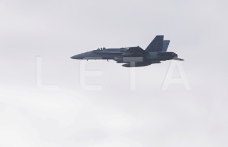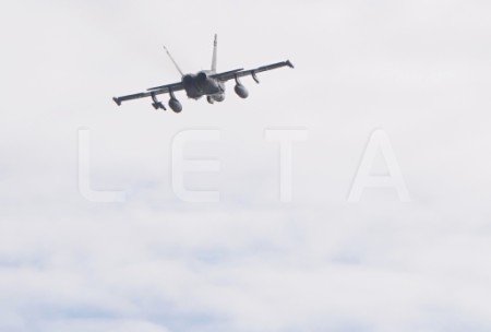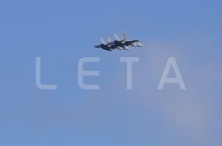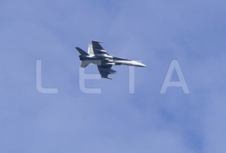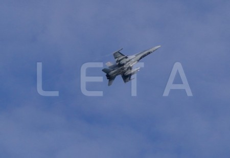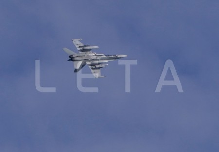 Iznīcinātāju F-18 pārlidojumi militāro mācību "Tarassis" mediju dienā ...
