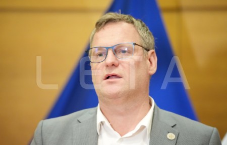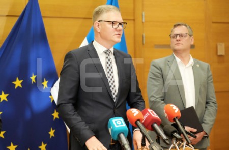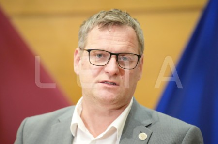 Rīgas pilsētas izpilddirektors Jānis Lange piedalās preses ...