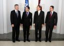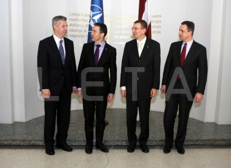 Министр обороны Артис Пабрикс (слева), генеральный секретарь НАТО ...