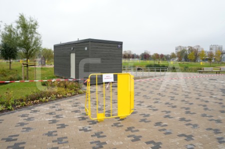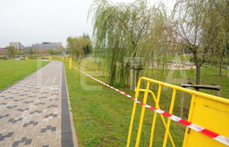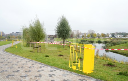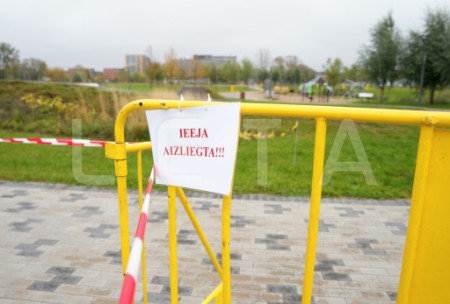 Norobežojumi Skanstes parkā.