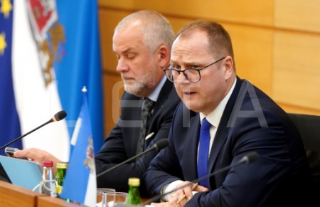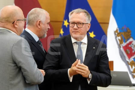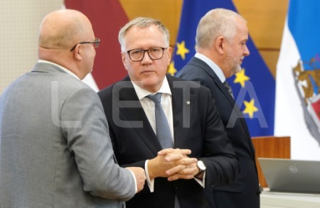 Rīgas domes priekšsēdētāja vietnieks Edvards Ratnieks (no labās) un ...