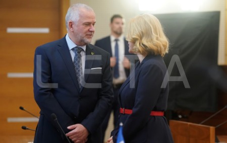 Valmieras novada domes priekšsēdētājs Jānis Baiks (no kreisās) un ...