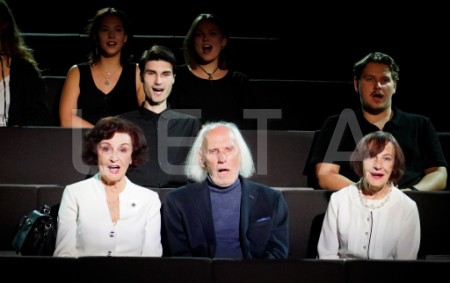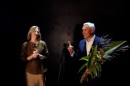 Dailes teātra aktieri Olga Dreģe (no kreisās), Juris Strenga un ...