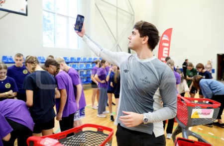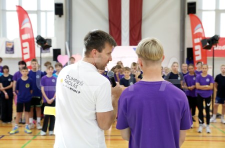 Peldētājs Daniils Bobrovs piedalās iniciatīvas "Olimpieši skolās ar ...