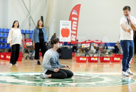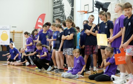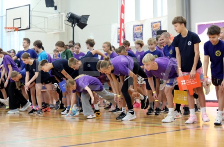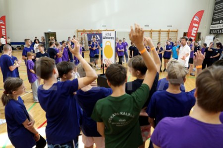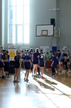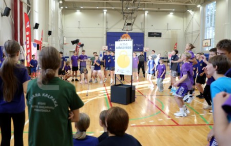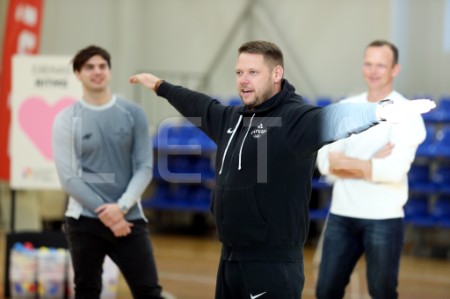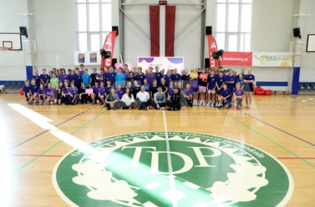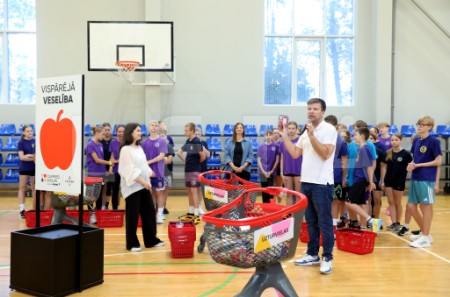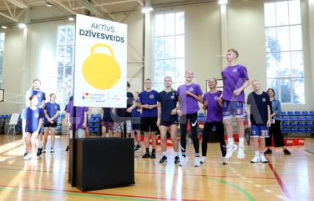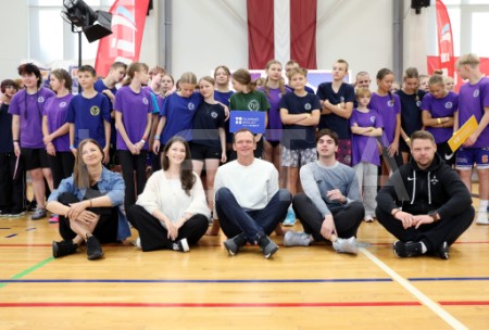 Pludmales volejbolists Jānis Šmēdiņš (centrā) piedalās iniciatīvas ...