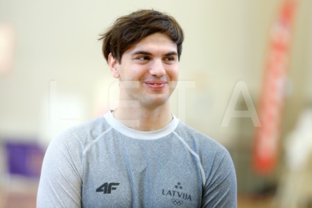 Pludmales volejbolists Jānis Šmēdiņš (no kreisās), peldētājs Daniils ...