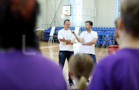 Peldētājs Daniils Bobrovs (no labās) piedalās iniciatīvas "Olimpieši ...
