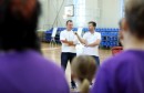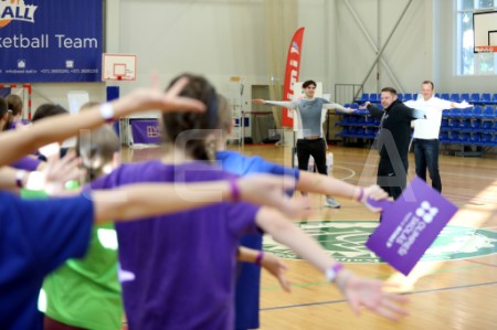 Peldētājs Daniils Bobrovs (centrā) piedalās iniciatīvas "Olimpieši ...