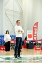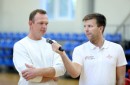 Peldētājs Daniils Bobrovs (no kreisās) un pasākuma vadītājs Edgars ...