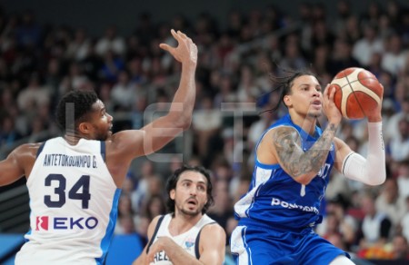 Grieķijas basketbola valstsvienības spēlētājs Jannis Adetokunbo pēc ...