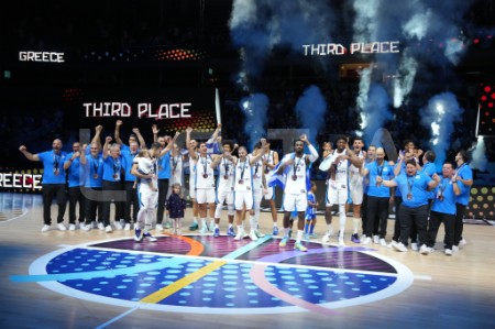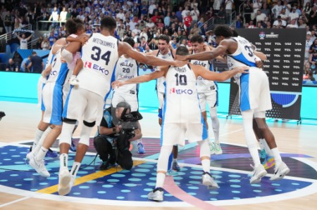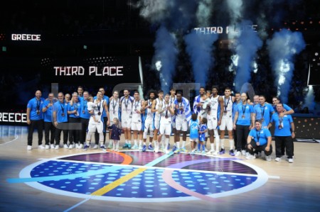 Grieķijas basketbola valstsvienība priecājas par iegūto trešo vietu ...