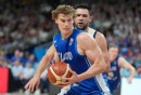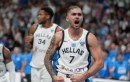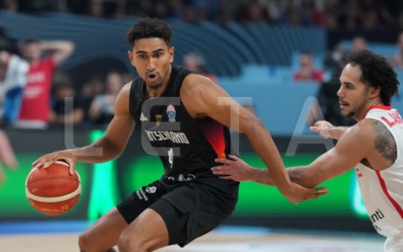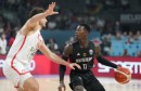 Vācijas vīriešu basketbola izlases aizsargs Deniss Šrēders (no labās) ...