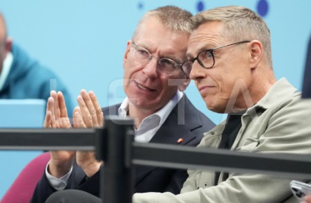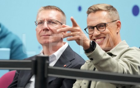 Valsts prezidents Edgars Rinkēvičs (no kreisās) un Somijas prezidents ...