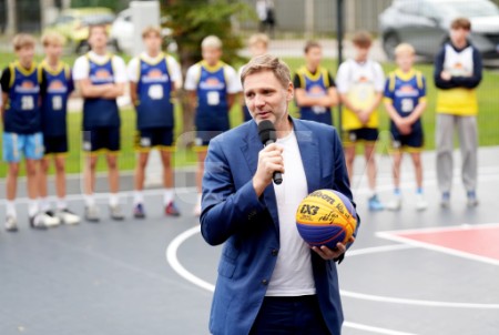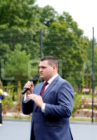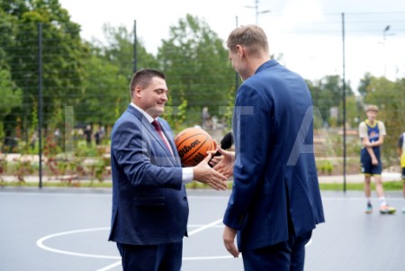 Multifunkcionālo basketbola laukumu atklāšanas pasākums Uzvaras parkā.