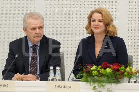 Saeimas priekšsēdētāja Daiga Mieriņa (no kreisās) un Latvijas ...