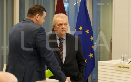 Rīgas domes (RD) priekšsēdētājs Viesturs Kleinbergs (no labās) ...