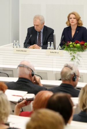 Saeimas priekšsēdētāja Daiga Mieriņa (no kreisās), Latvijas ...
