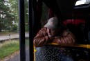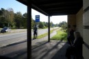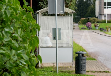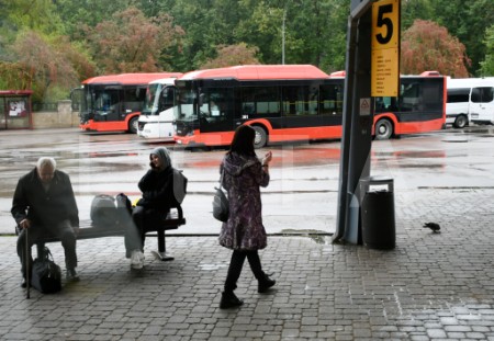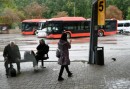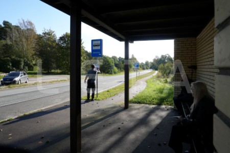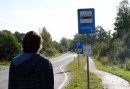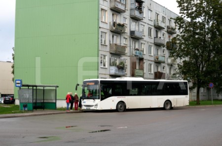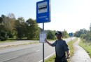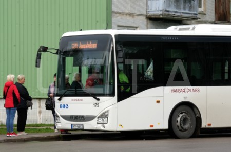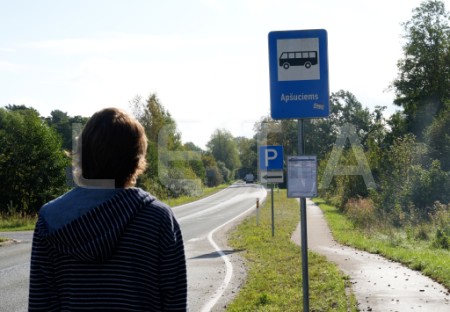 Cilvēki gaida autobusu pieturvietā "Apšuciems", protesta akcijas ...